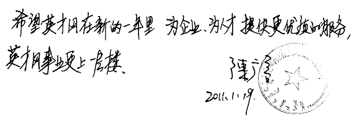 2011年是一览英才网的服务年,我们全体工作人员宣誓并承诺:我们定会继续秉承一览英才网“用心专注,服务专业”的企业理念,在“感恩、尽责、专业、合作、超越”的价值观指引下,加速中国职业化进程,为营造阳光健康的职业生态圈、打造最值得信赖的人力资源服务平台而努力奋斗!